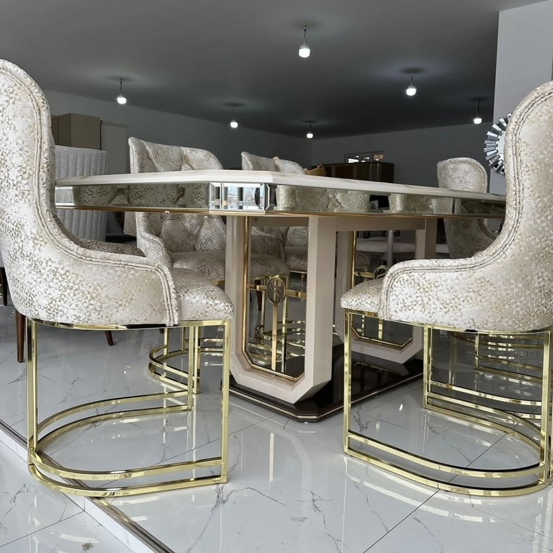 6 seater Gold dinning with Mable top